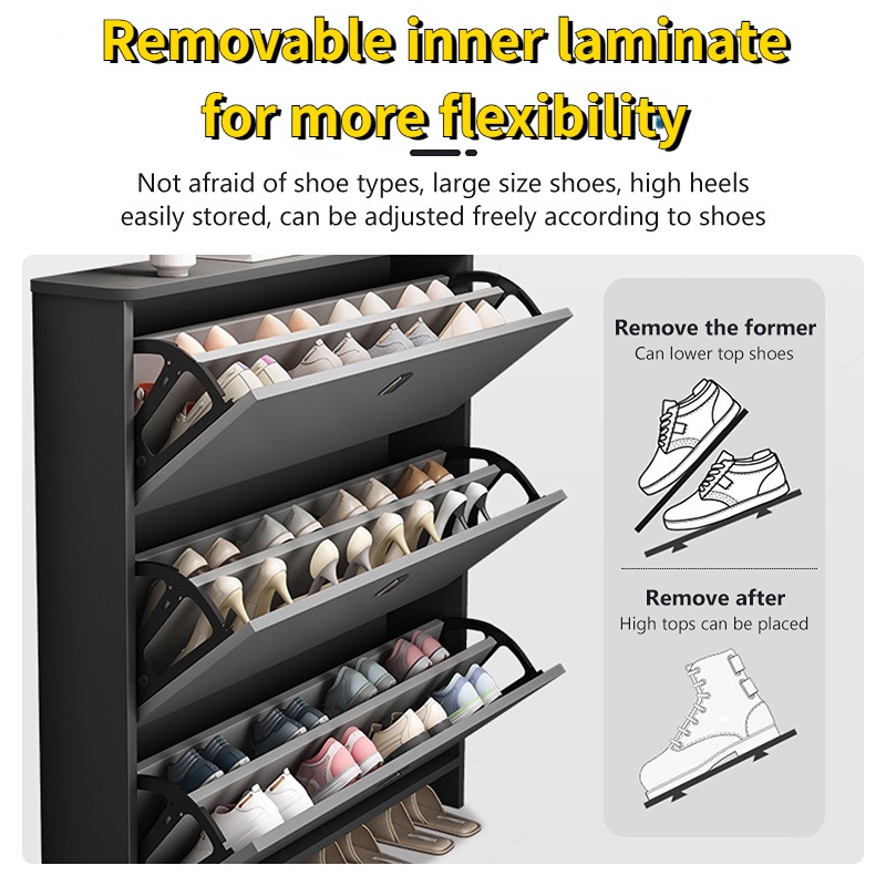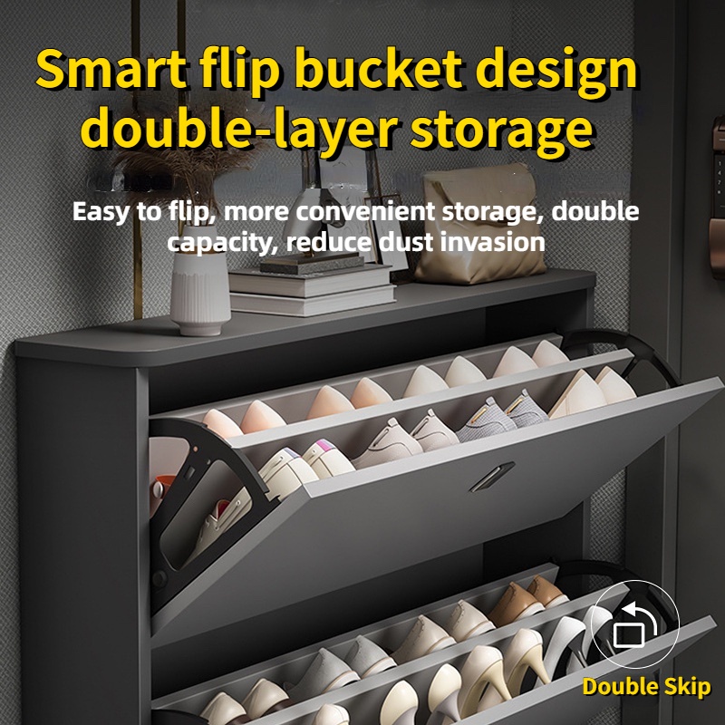 【SG Local Seller】Double Layer Shoe Cabinet 17/24cm Outdoor Shoe Rack 110cm Large Capacity Multifunctional Space Saving Ultra Thin Shoe Cabinet