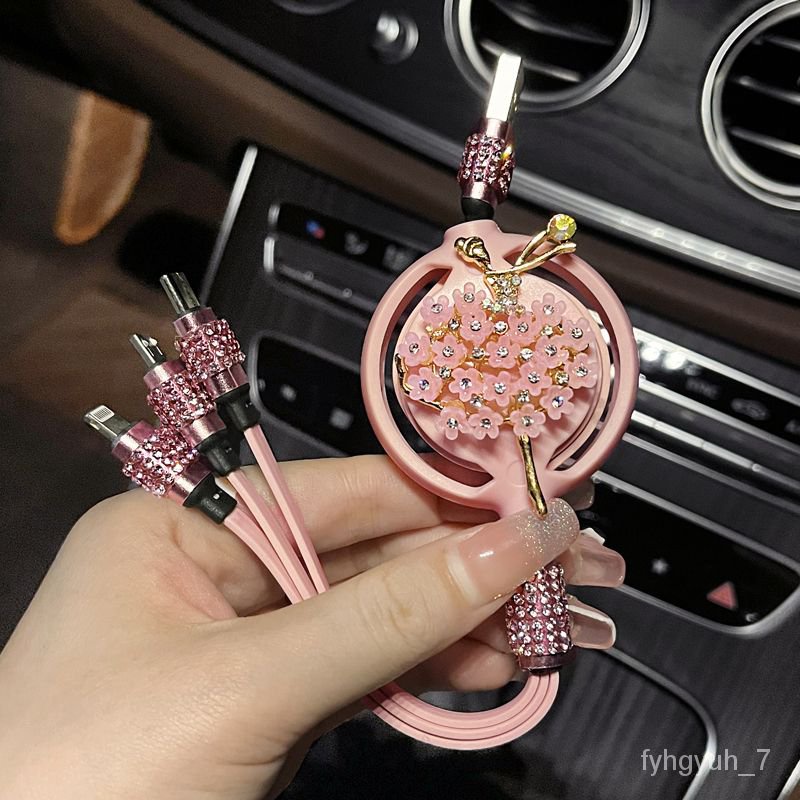2023Hot Sale?Vehicle-Mounted Usb Cable Three-in-One Fast Charge Line Applicable to Apple Android Mobile Phone Charging C