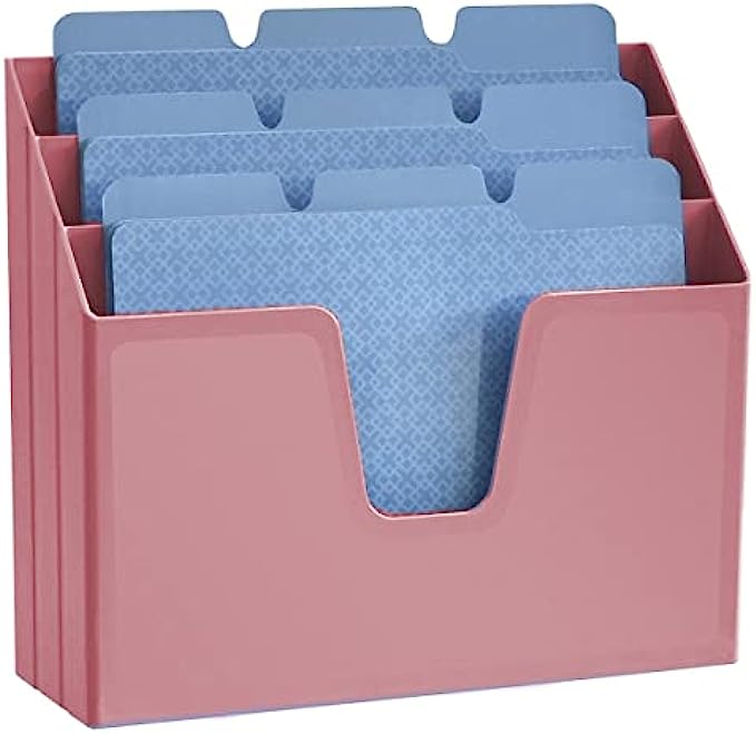Acrimet Horizontal Triple File Folder Holder Organizer (Solid Pink Color)