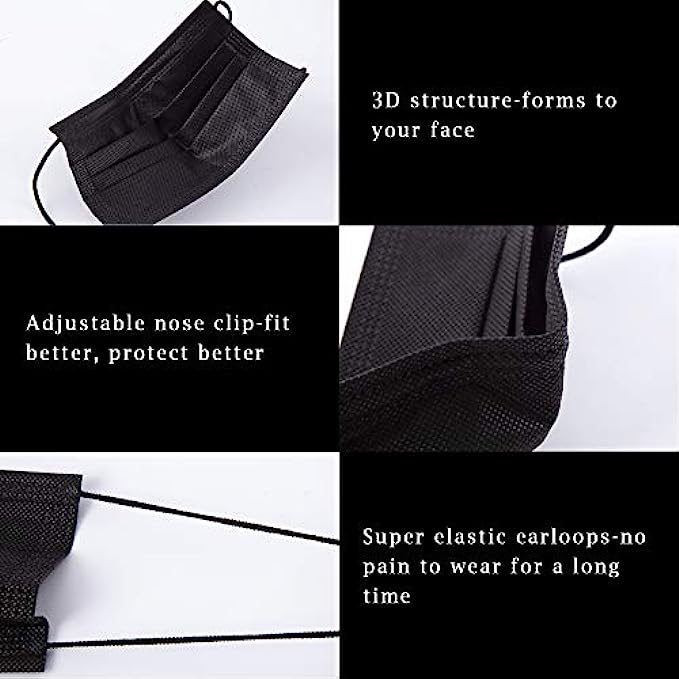 Disposable Face Mask, 100 PCS Black Masks, 3 Ply Protection Face Masks