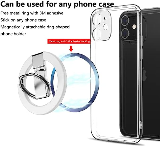 【Suitable for other phones and phone cases】Includes a metal ring with adhesive back and magnetic phone kickstand, you can stick the metal ring to your phone or phone case, then you can use the magnetic ring holder.