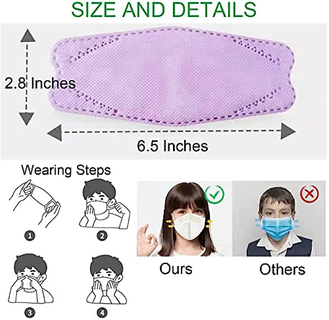 • COMFORTABLE ERGONOMIC DESIGN: lightweight breathable KF94_face mask is designed with your kids' comfort in mind. The mask U-shaped triangle solid is intended to align with the nose, chin, and ear for a comfortable fit and efficiently blocks the inhaling of the fine dust through the adhesion structure.