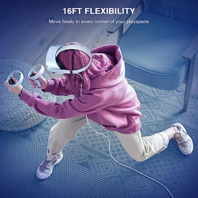 [16ft Maximum Freedom]: Ultra-long 16ft/5m oculus quest 2 link cable length along with lightweight, soft and flexible design gives you maximum moving convenience in your VR zone. LK Oculus Quest cable also comes with a hook & loop fastener that helps fix the cable to your headset arm, enabling you to be immersed in your VR world without being restricted.