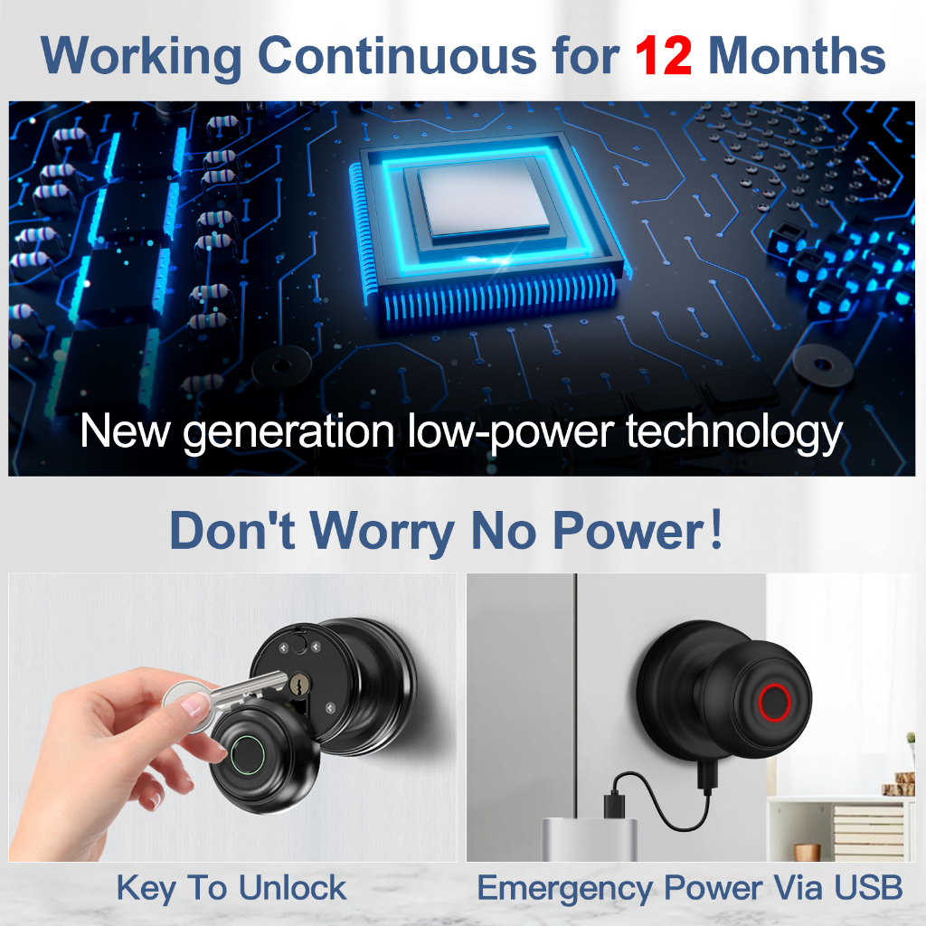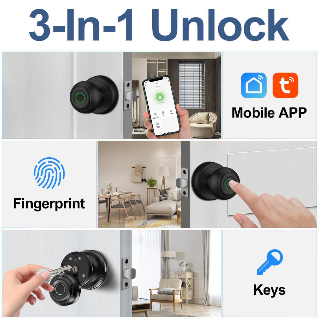 Smart Door Knob Wifi Smart Fingerprint Door Lock Biometric Door Lock With TUYA APP Apartment/Hotel/Bedroom