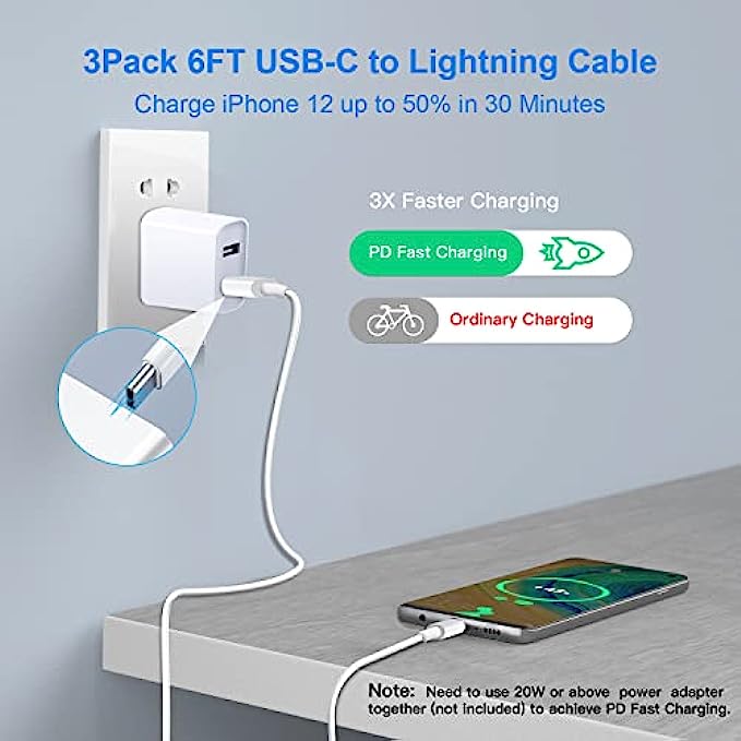 • 【What You Get】:3pack 6ft USB-C to lightning cables. We give them a hassle-free, lifetime warranty,If you have any questions, please feel free to contact us, we will resolve your issue within 24 hours.