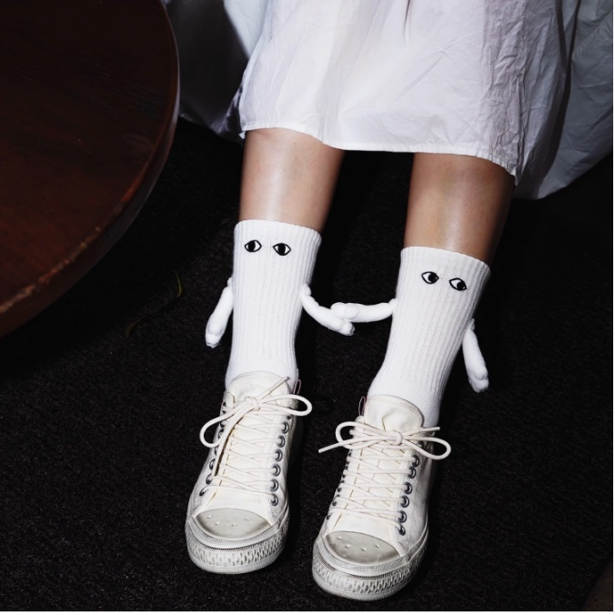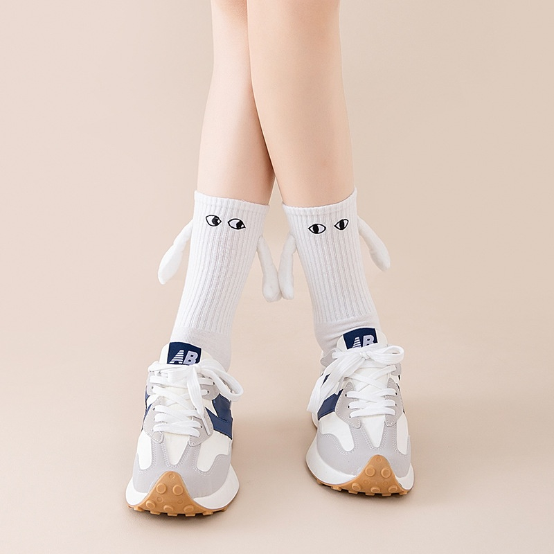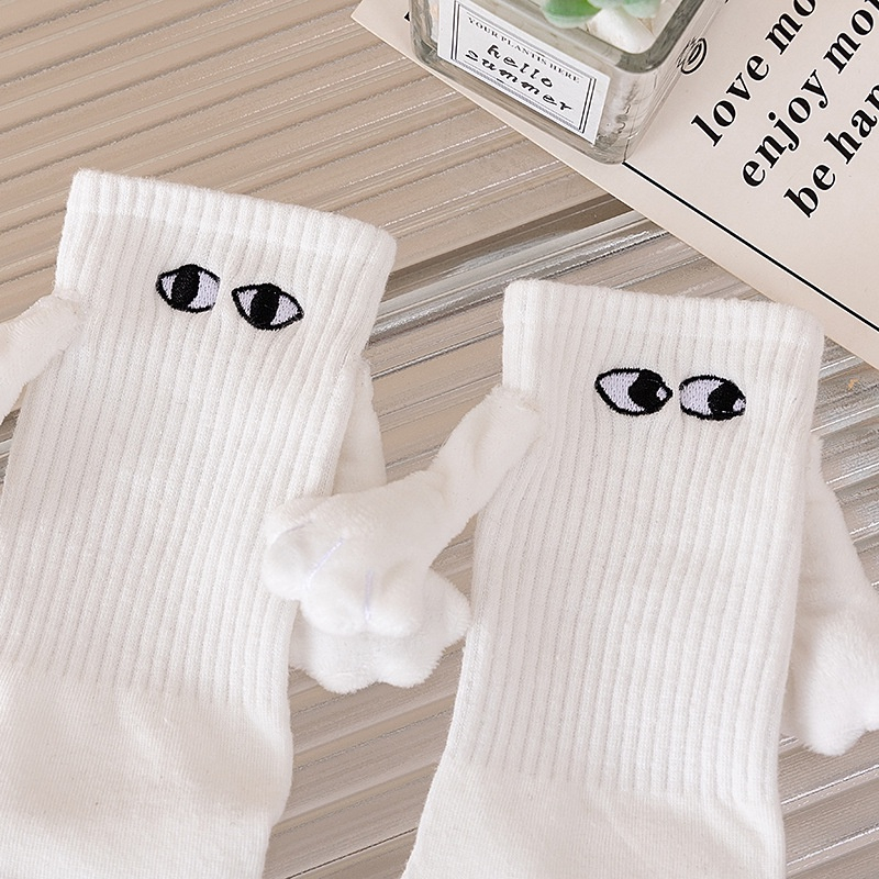 【Agilemind】 couples holding hands socks magnet personality stereoscopic doll cute white cotton hold hands stockin