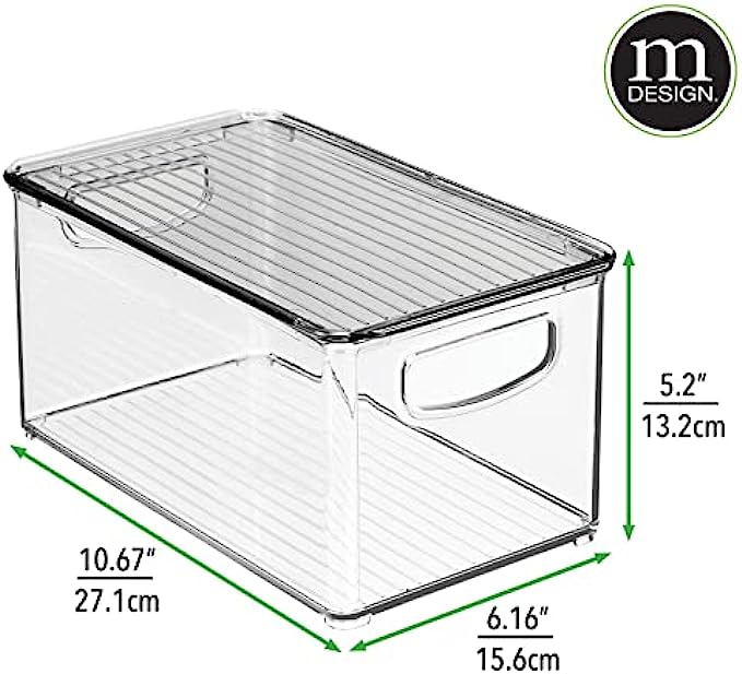 HANDLES: Bins feature easy-carry, built-in handles to make it simple to transport goods from shelf to cabinet or desktop; Just grab and go; The perfect storage and organizing solution for modern living spaces; Removable lids keep contents protected and dust-free; Use these convenient storage bins to keep children's crafting items all in one place; Great for school supplies, too; Perfect for home or commercial workspaces